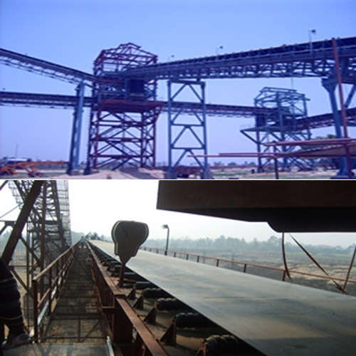 B) Portable Belt Conveyor system for two stage crushing and screening plant. All conveyor units have ruggedly fabricated steel structure frame so that it can be shifted, the whole unit where ever needed.